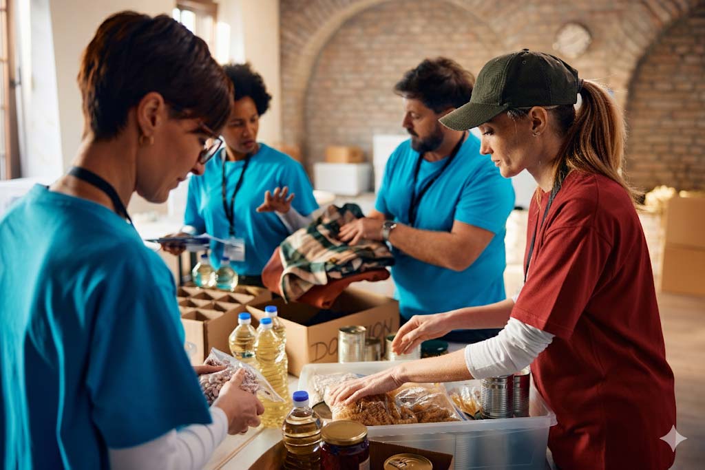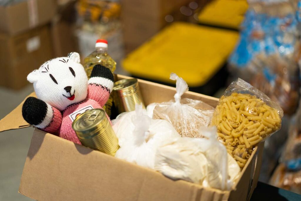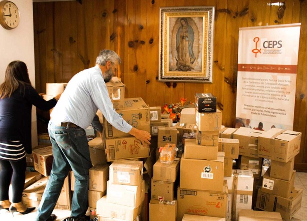 entregando alimentos a comunidades afectadas por desastres naturales.